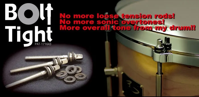 Canopus recommande d'installer des "Bolt Tight" sur vos caisses claires ainsi que l'ensemble de vos fûts afin d'isoler les sons parasites et maintenir un réglage stable.