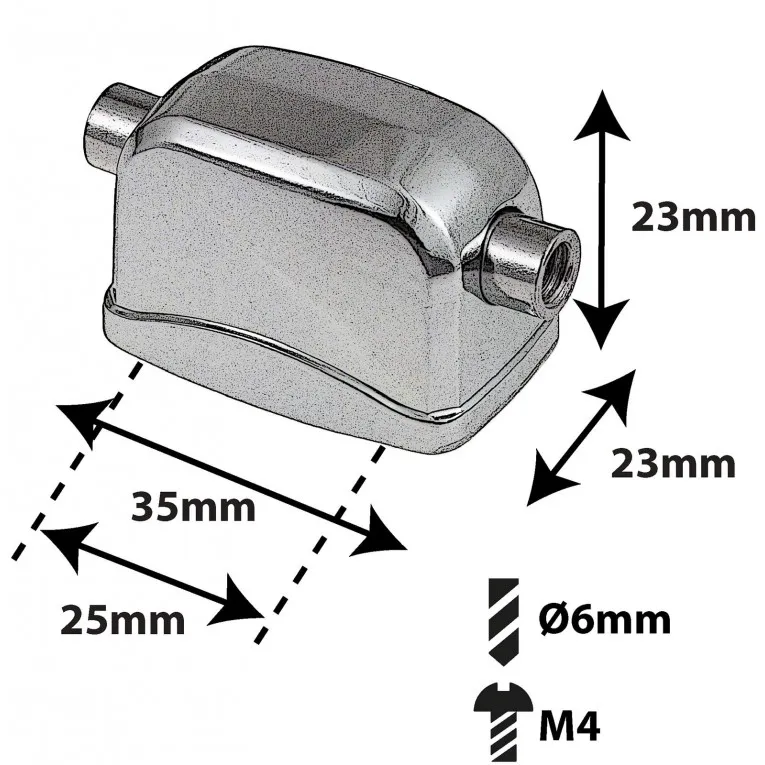 Coquille de Caisse Claire Détails Techniques : - Entraxe (Centre à Centre): 25mm - Diamètre Trou de Perçage: 6mm - Type de Vis de Montage: M4 - Filetage Tirants: Standard #12-24 (diamètre 7/32") - Coquille Laiton - Finition Chromée - Caoutchouc Isolant inclus - Vis de Montage non incluses