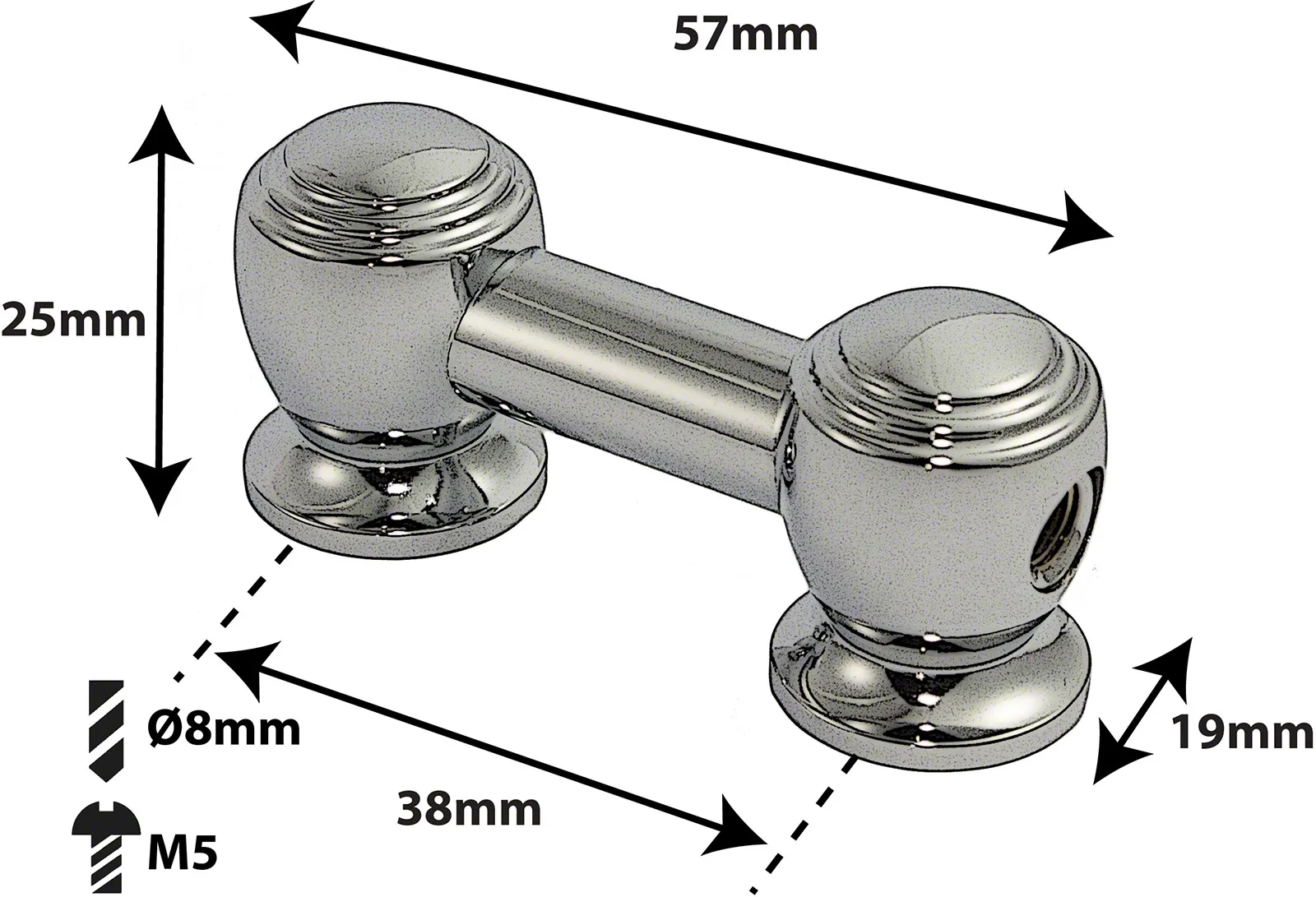 Entraxe (Centre à Centre): 38mm