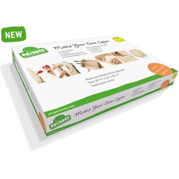 L’un des instruments de percussion les plus populaires aujourd’hui est le Cajon et maintenant avec note NINO® kit Cajon tu peut construire ton propre Cajon.Le kit vient avec toutes les pieces , une liste des matériaux et les outils dont tu as besoins.Les instructions vont te guider pendant ce projet amusant et à la fin tu seras en mesures de personnaliser la finition de l’instrument en untilsant par exemple nos pochoirs données et en ajoutant une laque ou de peinture avec un designe tout à fait unique. C’est plus qu’un instrument parfait pour les programmes scolaires.